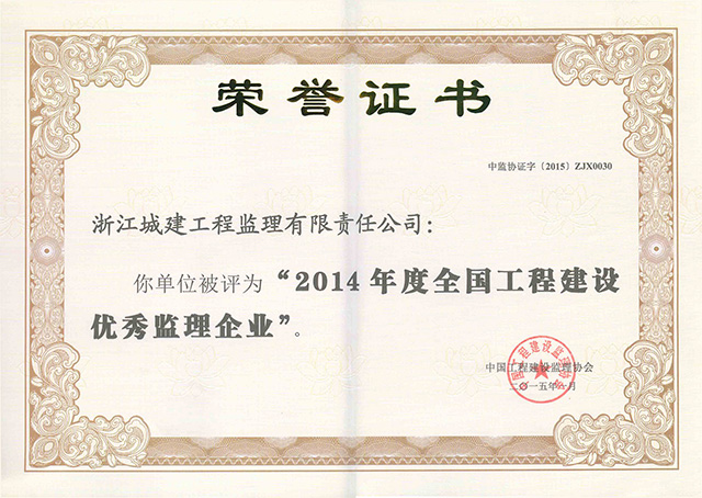 2014年全国工程建设优秀监理企业