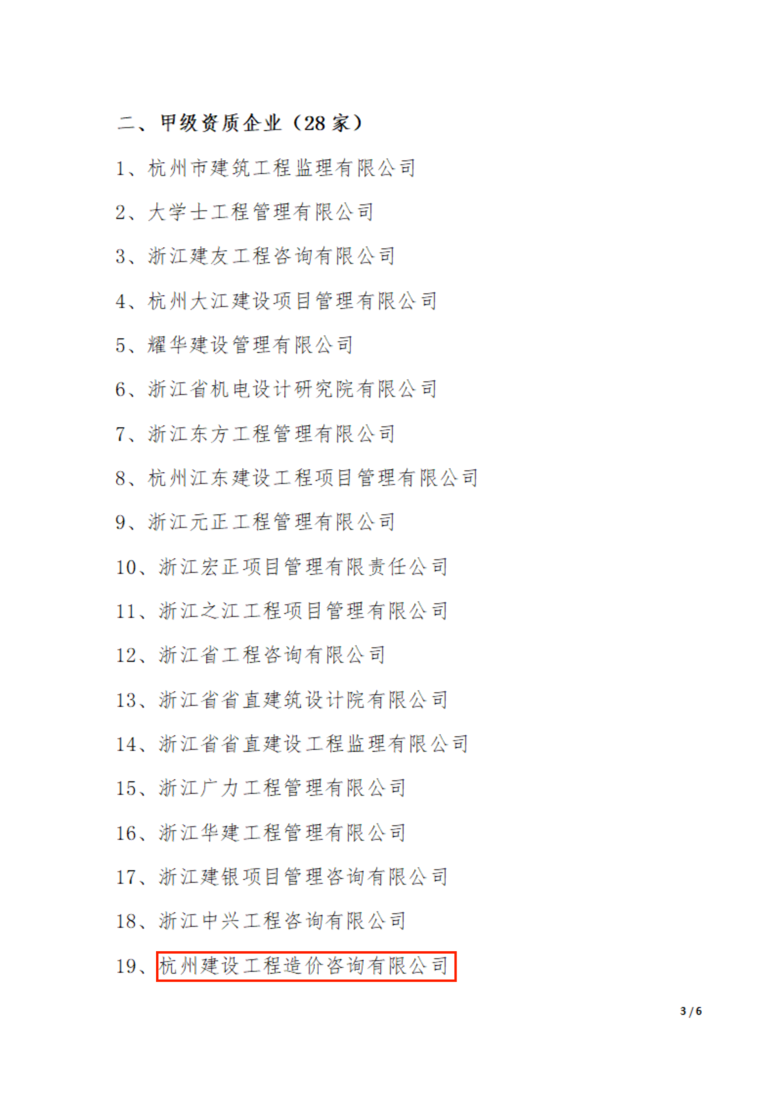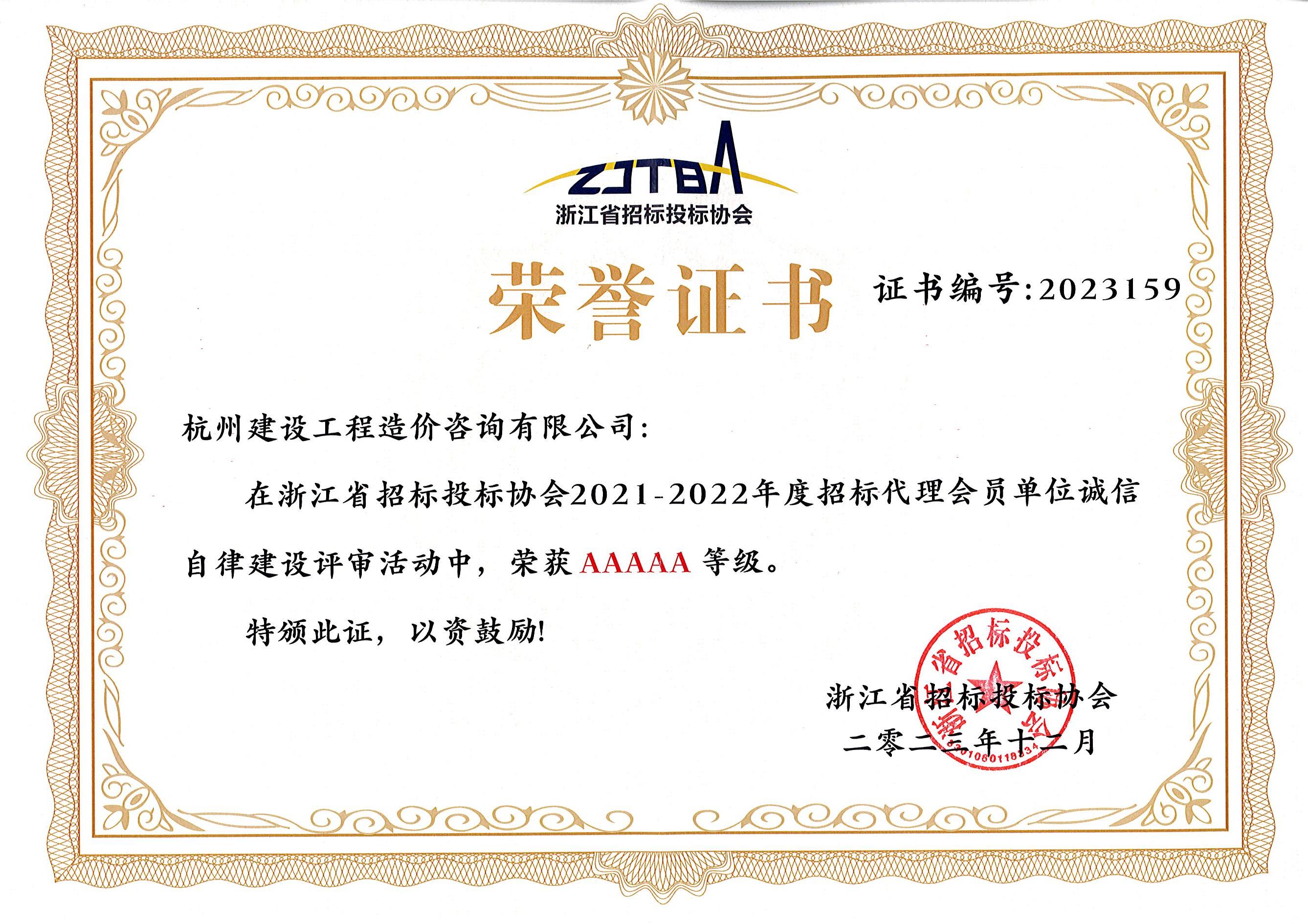浙江省工程造价咨询企业动态信用能力AAAAA